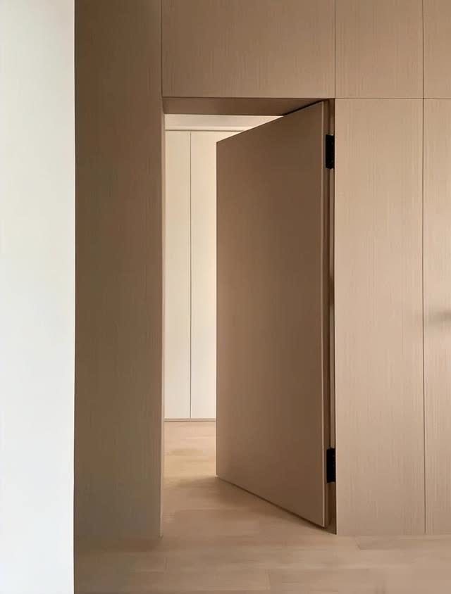 这种门从外观上看不出门套的运用,其实是将门套设计在了墙体里,仅仅这一点改变,就足以让整体的美观度上升一个高度,其实还是可以借鉴的!